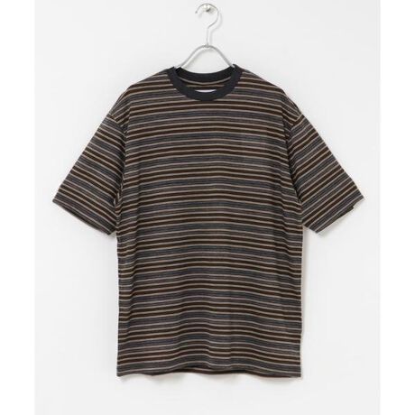 細めのマルチボーダーが落ち着いた印象を作るためジャケットのインや単体での着用どちらでも使いやすいです。