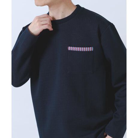 シンプルな見た目の中にさりげない遊び心を効かせたダンボールカットソー。襟元の内側や胸ポケット部分、袖をロールアップした際に覗く裏地のストライプ柄がアクセントになり、コーディネートに程よいポイントをプラスします。素材には軽くて弾力のある着心地が魅力のダンボールニットを採用。程よいハリ感があり体のラインを拾いにくく、立体感のあるきれいなシルエットをキープします。1枚で着てもサマになり、デイリーに取り入れやすいカジュアルアイテムです。