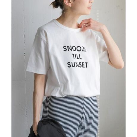 シンプルなフロッキープリントのTシャツをシンプルな配色で仕立てることで大人な雰囲気に。