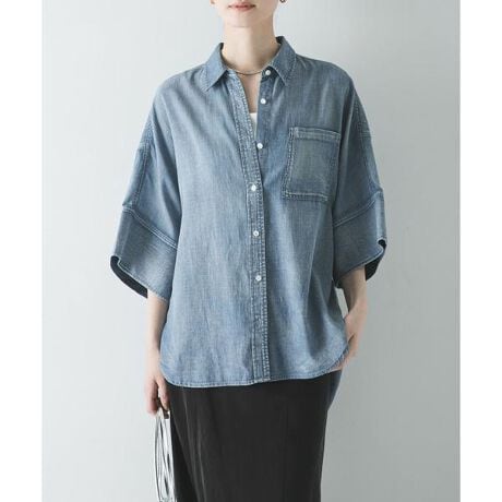 デニムの風合いをシアー素材で軽やかに纏う、ハーフスリーブシアーデニムシャツ。