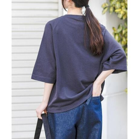 ゆったりとしたサイズ感でどんなボトムスでもマッチする一着は、薄い生地なのでボトムにインしてももたつかないのがポイント◎