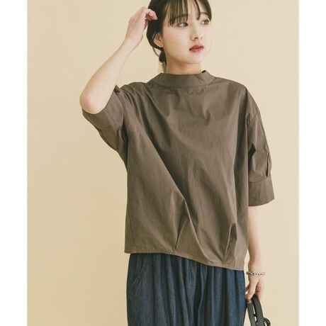 長く愛される、5分袖ハイネックブラウス。