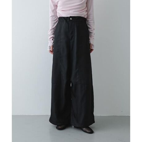 クリアでシンプルなシャツやコンパクトなニットと合わせることで、素材の持つ柔らかな落ち感がより際立ちます。ウエストの絞り具合や裾のフォルムを自在に調整できるので、その日の気分やシューズに合わせて自分らしいバランスを完成させられるのが魅力。リラックスした履き心地ながらも、ツイル生地の上品な質感が、日常の装いをスマートに格上げしてくれる一着です。