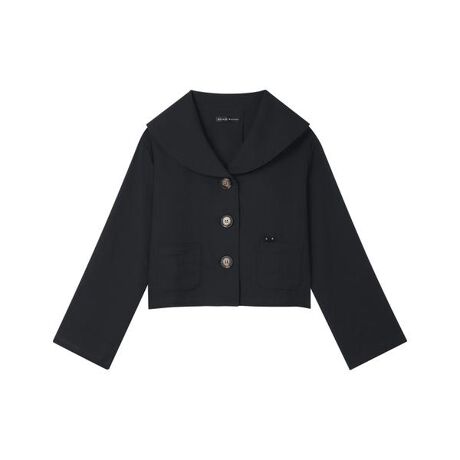 [型番:HTX520]・綿100%の二重ガーゼを使用・ポケットから顔をのぞかせている黒猫のアップリケがデザインポイント※お洗濯は、必ず「取扱い表示」にしたがってください。