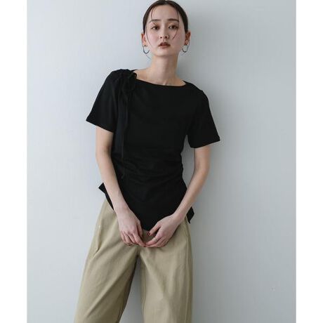 ミニマルな中に計算されたディテールが光る、主役級のデザインカットソー。クリアでシンプルなボートネックに対し、サイドに寄せたシャーリングが等身大の女性らしさを引き立ててくれます。肌当たりの良いソフトな生地感は、デイリー使いにも最適。デザイン性の高いアシンメトリーな裾は、パンツでもスカートでも合わせるだけで自分らしい旬のバランスを完成させてくれます。