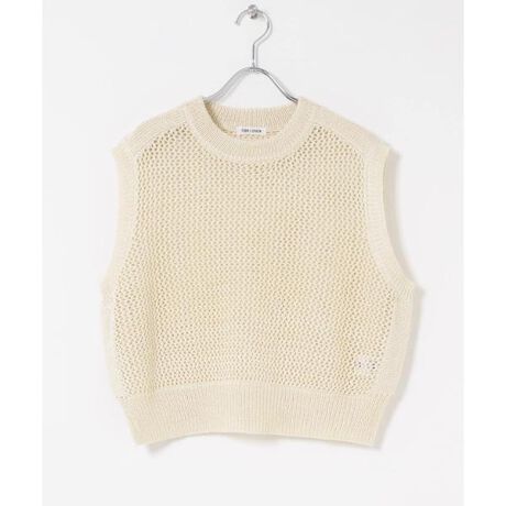 和紙混の糸と光沢のある糸を引き揃えてメッシュパターンのニットベストを作りました。