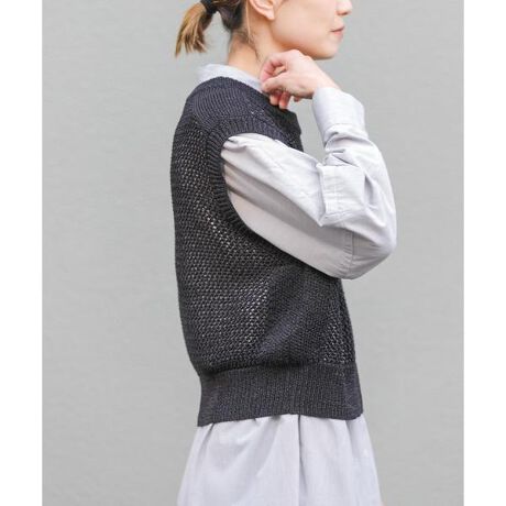 和紙混の糸と光沢のある糸を引き揃えてメッシュパターンのニットベストを作りました。