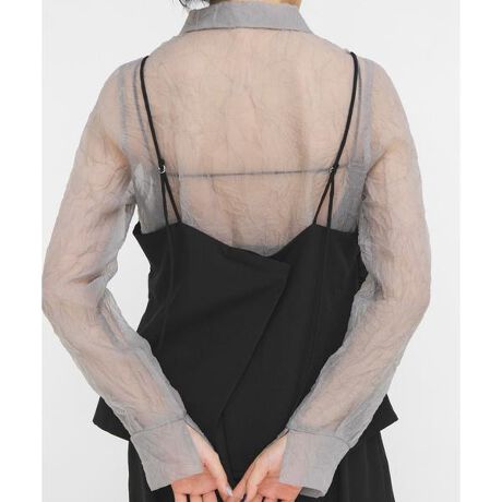 程よい透け感とワッシャー素材が特徴的な軽い着心地のシャツ。そのまま1枚で着ていただくのはもちろん、ニットにレイヤードしたりキャミソールの上から羽織ったりミニマルなスタイリングもおすすめです。