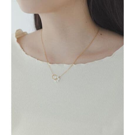 パールが並んだまるでお花のようなモチーフとメタルのリングがつらなった、シンプルながらも女性らしいデザイン。