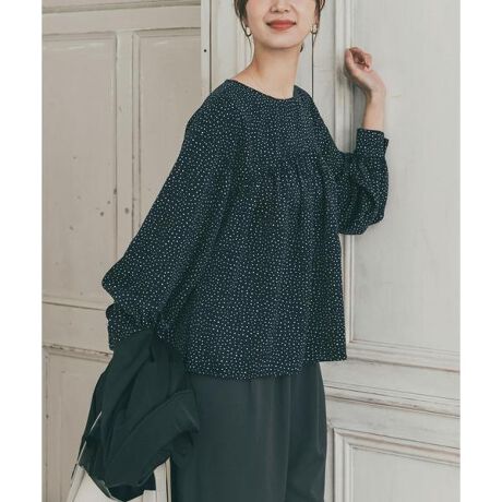 大人可愛いシルエット、ランダムドットブラウス