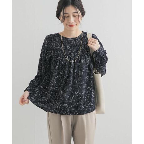 なめらかな肌触りと、動きに合わせて揺れる落ち感が美しいランダムドット柄のギャザーブラウスが登場しました。