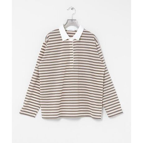 別注ボーダーとシアー素材が映えるシャツカラーカットソー。
