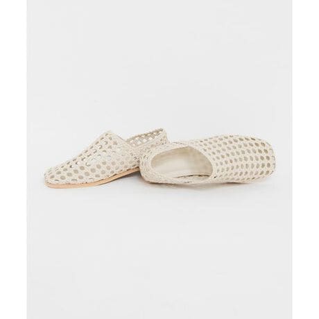 足元を優しく包み込む、全面手編みで編んだメッシュが魅力のシューズ。お洒落な足元を叶える程よい抜け感や、踵を踏める仕様もポイントです。安定感のあるフラットなデザインは歩きやすくデイリーに活躍します。