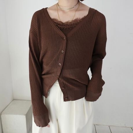 【一部店舗限定】レースキャミ付きニットアンサンブル/カーディガン【予約】
