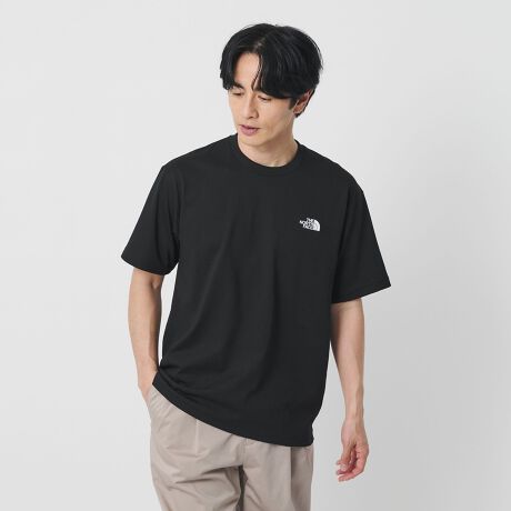 速乾性のあるリサイクルポリエステルと風合いのよいコットンを混紡した、ニット素材の半袖Tシャツ。