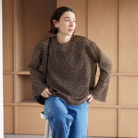 着こなしをフェミニンに彩るドットシアーブラウス