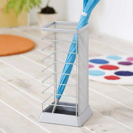●片面はメッシュ、もう片面はロッドと2つの違ったデザインを楽しめる傘立てです。