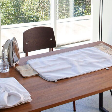 ●サッと広げると、どこでもアイロン台に早変わり!テーブルもデスクもアイロン台になります。