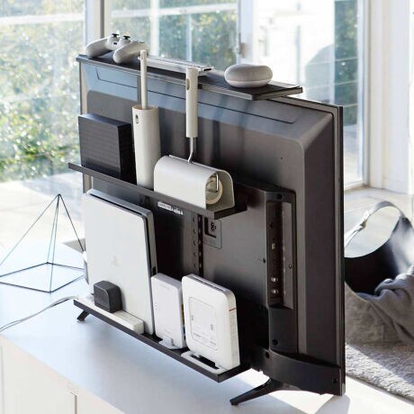 ●テレビ裏が収納スペースに大変身するこちらは、テレビに設置するタイプの収納ラックです。