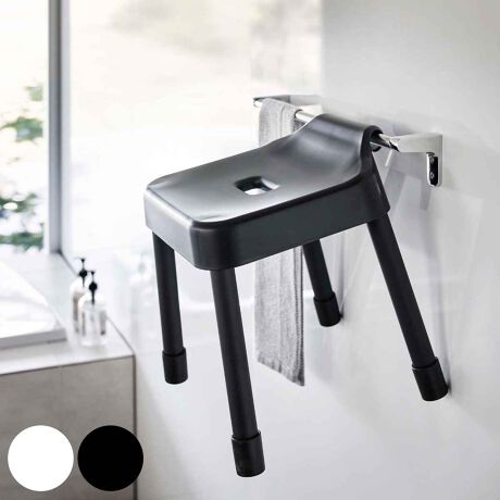 ●浴室のタオルバーなどに掛けて、乾かせるフック付き風呂イスです。