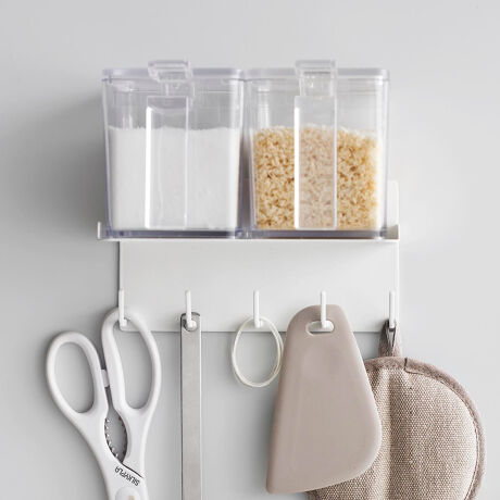 ●マグネットで簡単に取り付けできる5連フック付き調味料ラックです。