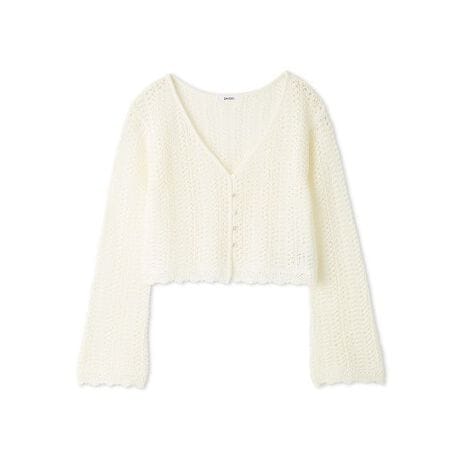 流れるような柄編みを表現したナチュラルな風合いのクロシェニットカーディガンです。艶やかなシェルボタンがアクセントに。短めの着丈ですが身幅はゆったりのため、リラクシーに羽織っていただけるアイテムです。袖口はベルスリーブで抜け感を出しました。猛暑日にも軽やかに着ていただけます。水着の上に羽織っても素敵です。