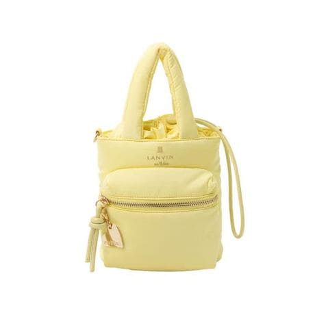 キャンディのようにキュートなカラーリングが目を引く「ボンボン」シリーズ。柔らかな光沢感のあるナイロン素材を使用し、可愛らしさの中に大人も持ちやすい上品さを兼ね備えたデザインが魅力。コンパクトなサイズ感ながら、前面のメイン収納とフロントの大きめファスナーポケットにより、ミニバッグ以上の収納力を実現しています。内側にはバイカラーの裏地を採用し、開けた瞬間に気分が上がる遊び心のある仕上がりに。さらに、ハートモチーフのプレートチャームがアクセントとなり、LANVIN en Bleuらしい可憐な世界観をプラス。ハンドル持ちとショルダー持ちが楽しめる2WAY仕様で、デイリーからお出かけまで幅広いスタイルに合わせやすい、使い勝手とデザイン性を両立したミニバッグです。【メーカーサイズ寸法(実寸)】FREE : 重さ:210g, 高さ:17cm, 幅:18cm, 底マチ:6cm, 持ち手高さ:10cm, ショルダーストラップの長さ:69-92cm