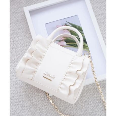 ◇SAMANTHAVEGA(サマンサベガ)のフリルリボンショルダーバッグサマンサベガから可愛らしさと上品さを兼ね備えたショルダーバッグが登場。▽デザイン・フリルは2段重ねでボリュームアップ!コーディネートのアクセントになります。・甘いテイストにモノトーンや淡い色合いが大人っぽく上品な印象に。・可愛らしさの中にもエレガントさが光るデザインはどんなスタイルにもぴったりです。▽機能性・斜め掛けにできるショルダー付きなので、気分に合わせて変えていただける2WAY仕様です。・内装には中心にしきりがあるので、整理整頓がしやすいです。・お出かけに良いサイズなので、スマホショルダーとしてもご使用いただけます。【対応しているもの】・折財布