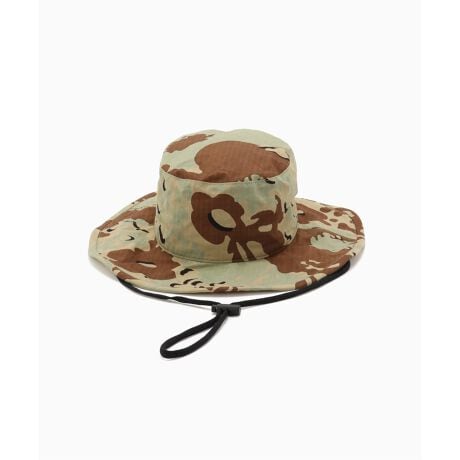 「KIJIMA TAKAYUKI」とのコラボによる、インパクト放つリップストップ地のカモフラージュ柄ハット。大胆な迷彩柄がシンプルな装いのアクセントに映える、スタイリングの主役を飾る一品です。