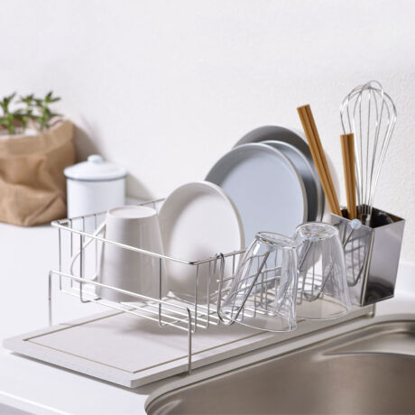 ●珪藻土トレイが洗い物から落ちた水滴をサッと吸収し、徐々に空気中に放出してくれます。