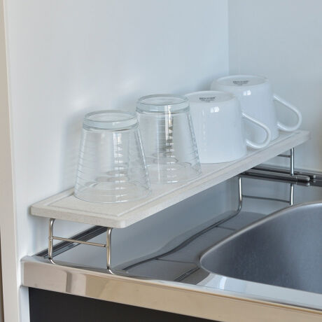[型番:310637]【デザイン】●シンクに渡して設置するだけで、省スペースな水切りラックとして活躍します。●洗った食器類の水切りはもちろん、調理中の一時置きなどにもオススメです。●脚部に高さがあるので風通しがよく、ボード自体も乾きやすい構造になっています。【スペック】サイズ/約幅43×奥行12×高さ6.5cm内容量/1個材質/本体:18-8ステンレスモイストレイ:バーミキュライト、珪砂、パルプ、消石灰生産国/日本製耐荷重/約3kg