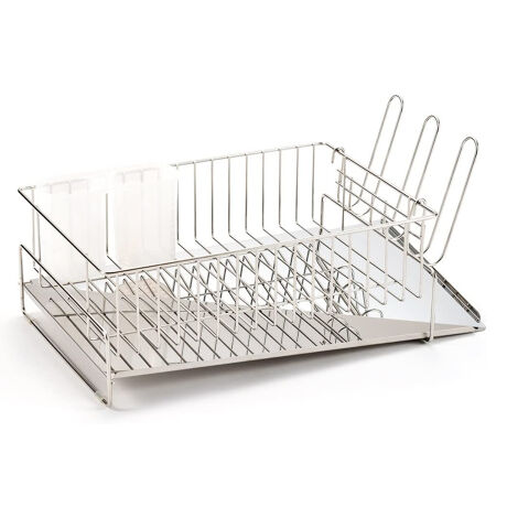 [型番:413870]【デザイン】●奥まで置けて作業スペースを広々と使えます。●しっかりシンクまで水を流せる傾斜構造です。●右置き用・左置き用の2種類から選べます。【スペック】サイズ/約幅41.8×奥行25.2×高さ14cm付属品含まず重量/約1.2kg内容量/1個付属品:トレイ、箸立て(各1個)材質/本体:18-8ステンレストレイ:ステンレススチール箸立て:ポリプロピレン種類/右側、左側生産国/日本製耐荷重/約2kg