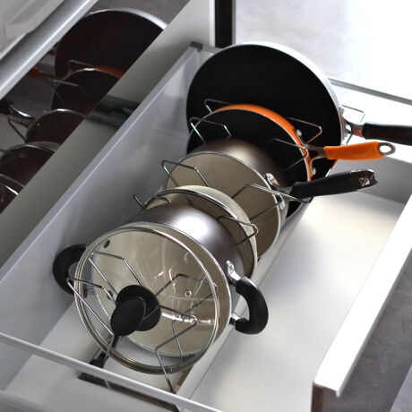 ●シンク下のスペースを有効活用できる、スチール製のフライパン収納ラックです