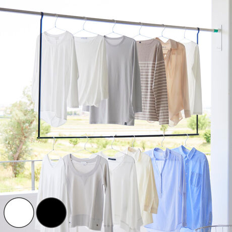 ●物干し竿に掛けるだけで簡単に設置できる折りたたみ伸縮物干しハンガーです。