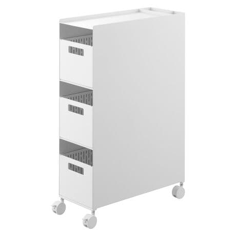 ●テーブル下やソファ横に設置できる引き出せるバスケットワゴン3段です。