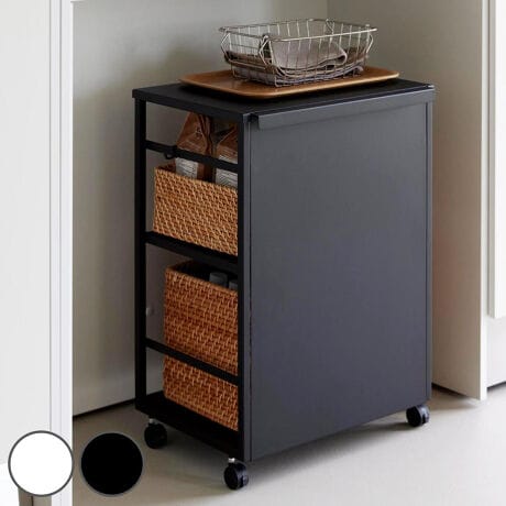 ●ワゴンは前面パネルを使って目隠しできる設計になっており、よく使うけれど隠しておきたいアイテムの収納に便利です。