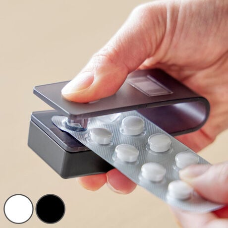 ●ワンプッシュで簡単に錠剤を取り出せる、マグネット収納対応の錠剤オープナーです。