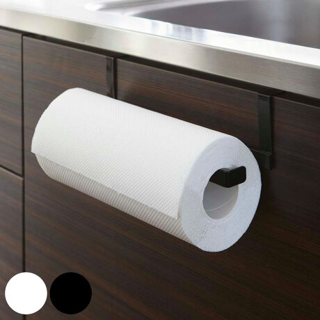 ●吊り下げ戸棚とシンク下のキッチン扉のどちらでも設置できるキッチンペーパーホルダーです。