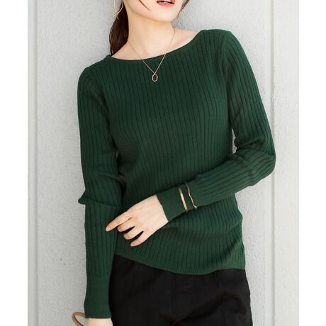 リブニットボートネックトップス