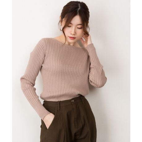リブニットボートネックトップス