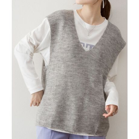 aity アイティ ネックラインが女性らしい深Vニットベスト。