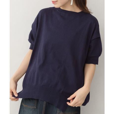 aity アイティ 袖にスリットの入った5分袖のラウンドネックサマーニットです。