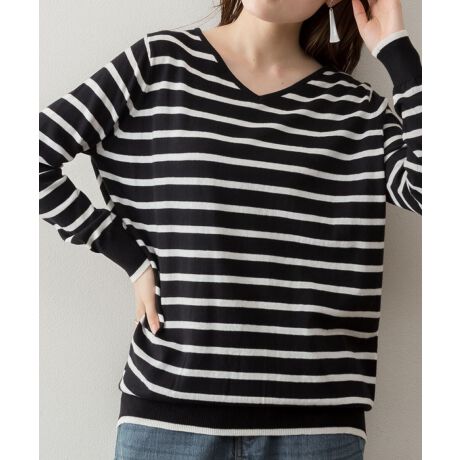 Vネックボーダーニット