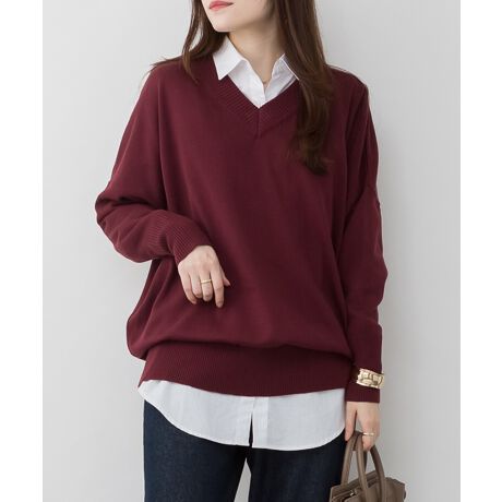 Vネックリブドルマンセーター