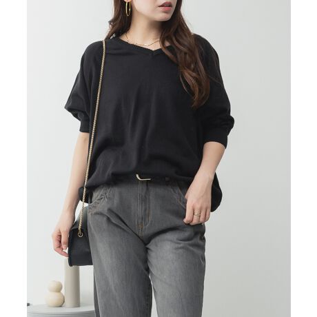 ドルマンシルエット5分袖サマーニット