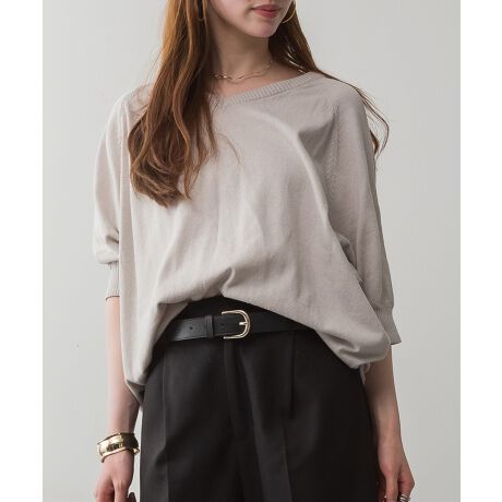 aity アイティ ドルマンシルエットの5分袖コットンニットです。