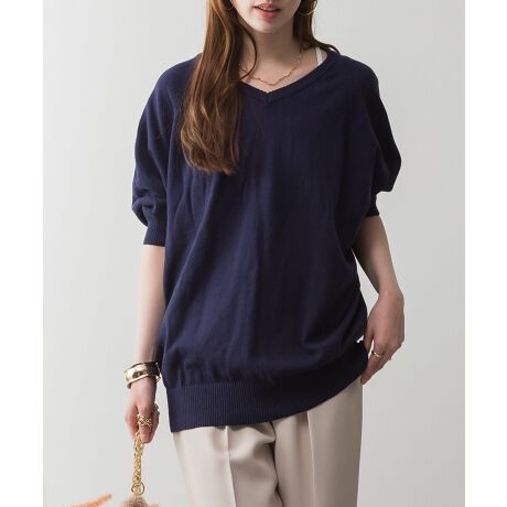 ドルマンシルエット5分袖サマーニット