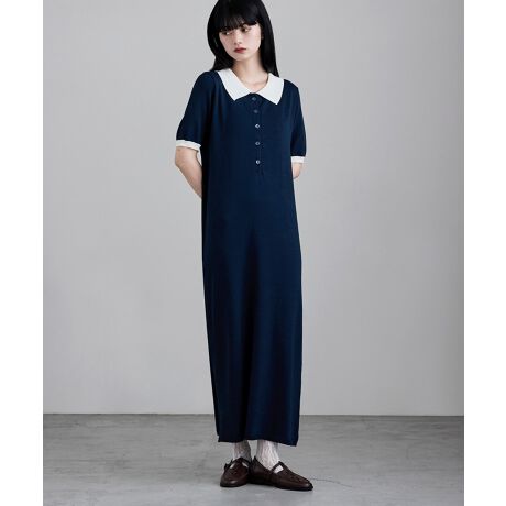 etoll. エトル レトロでクラシカルな配色デザインのポロ襟ニットワンピース。