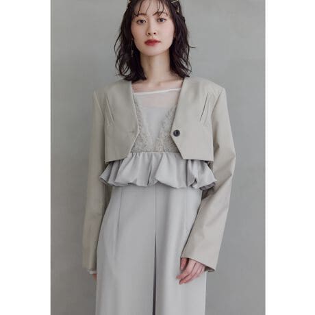 niana ニアナ シャープな表情に仕上げたノーカラーデザインのクロップドジャケット。