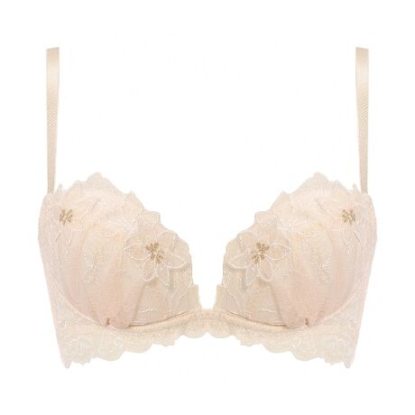 センターが低めで、カップ脇をすっきりしたラインにすることで、バストを内側にプッシュして谷間を作ります。
